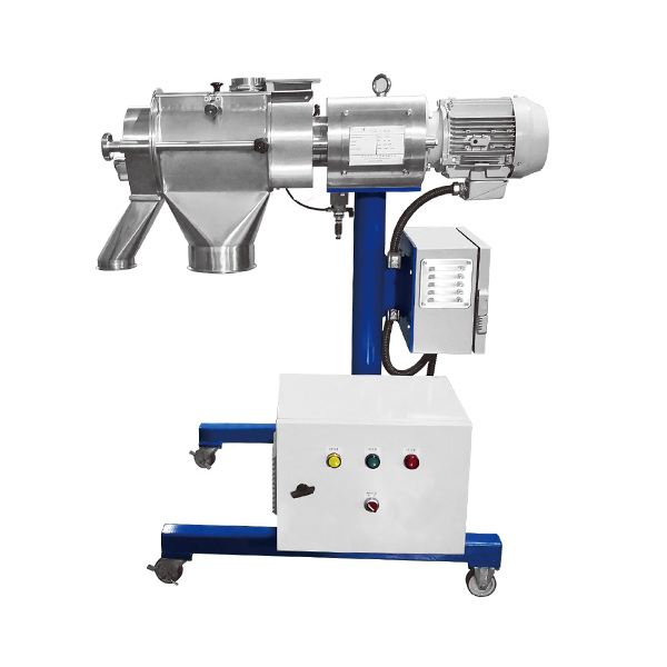 The raw material supplied from the feed port to the machine is conveyed to the end of the cylinder screen through the cylinder screw feeder, which is dispersed in the inner surface of the cylinder screen by the high-speed rotating blade. The blade has a certain torsion Angle, and the raw material moves towards the exit side while rotating in the cylindrical screen. At this point, material accelerated by the rapidly rotating blades is pushed to the inside of the screen, causing the screen around the blades to produce very small vibrations. This vibration has a high frequency wave number and a great acceleration, in can prevent the screen mesh plugging at the same time, let than the screen mesh tiny particles through the cylindrical screen from the micro powder outlet discharge, coarse particles can not pass through the small screen: hole, and from the outlet end of the cylindrical screen to the coarse powder outlet.