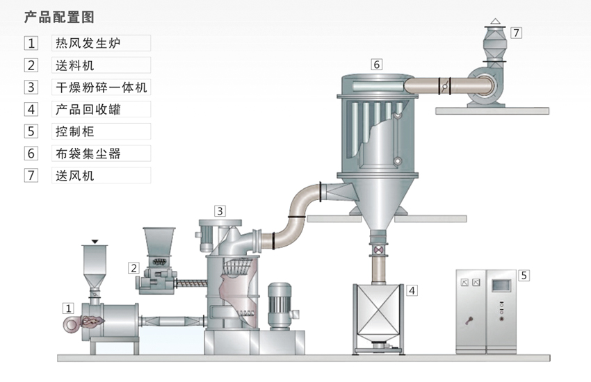 The equipment uses the hot air flow generated by the hot air furnace to make the material dry quickly in a short time. Due to the high speed operation of the dispersion wheel, the strong impact air flow and the rotary pressure in the machine are generated, so that the material has good dispersion and high drying efficiency.
